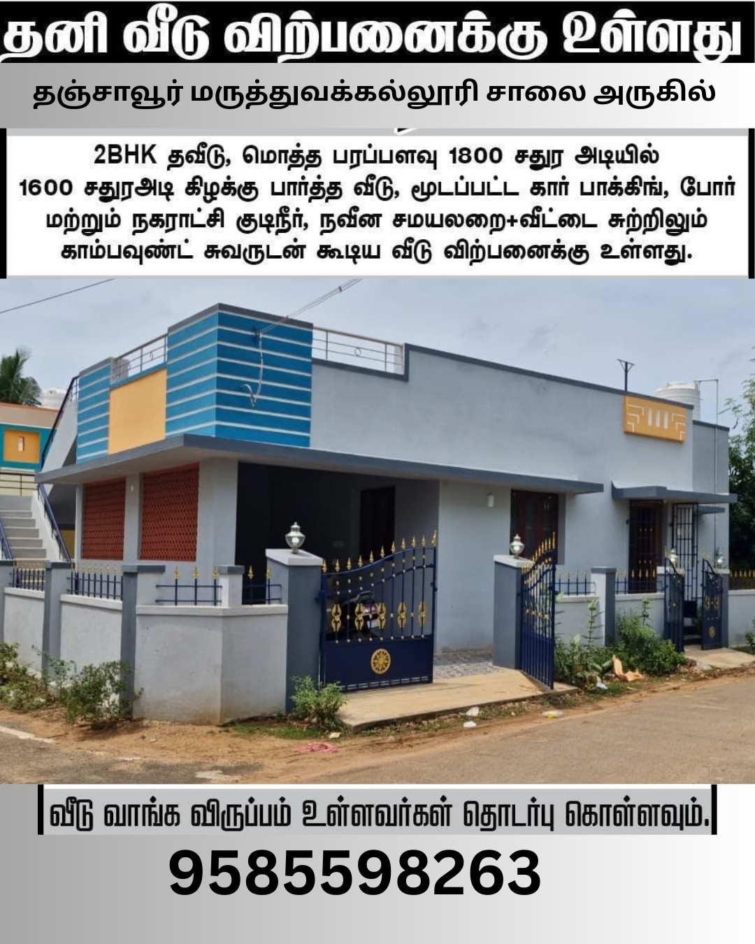 🏡 Individual House for SaleA beautiful 2BHK independent house is available for sale in a peaceful residential area of Thanjavur.📍 Location: